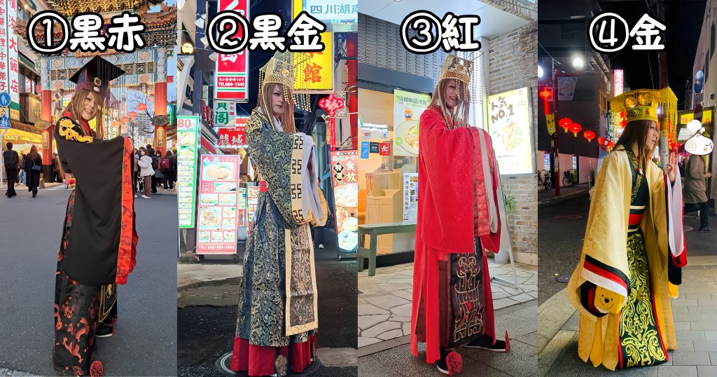 ・①黒赤/②黒金/③紅の龍袍/ろんぱおから選んでね