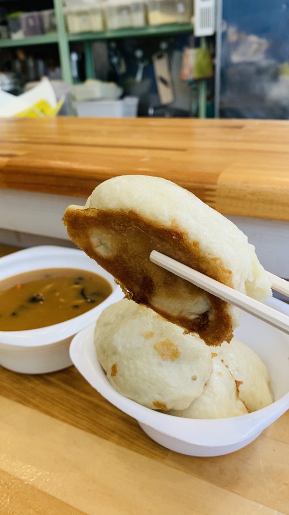 水煎包も定番の朝ごはん。お肉さん、春雨さんとかが入ってて栄養モリモリ。個人的にはブリトー推しとくけどこっちも好き。