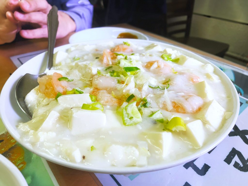 ぷりぷりのエビが入った柔らかい豆腐なのだ。優しい味わいなのだ。