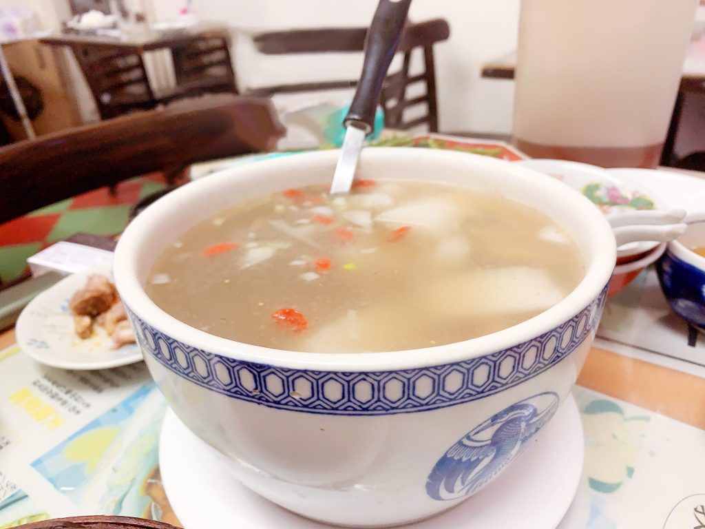 田七という薬草を使った鶏肉の煮込みスープなのだ。体に良い滋養強壮の一品なのだ。