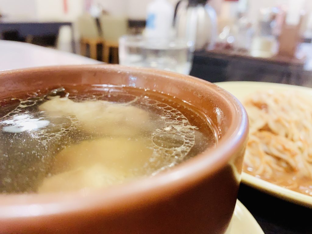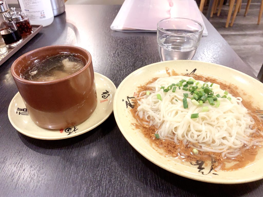 拌面と何かのスープのセットが推し。他にも推せるやつたくさんあるけど、とりあ麺とスープいっとけて感じ。スープはワンタンとか炖罐どぅんぐあん、てあっさり神味スープがあるけど、どっちかつーと炖罐が推し。お腹膨らましたいなら炭水化物であるワンタンスープがいいんじゃー??