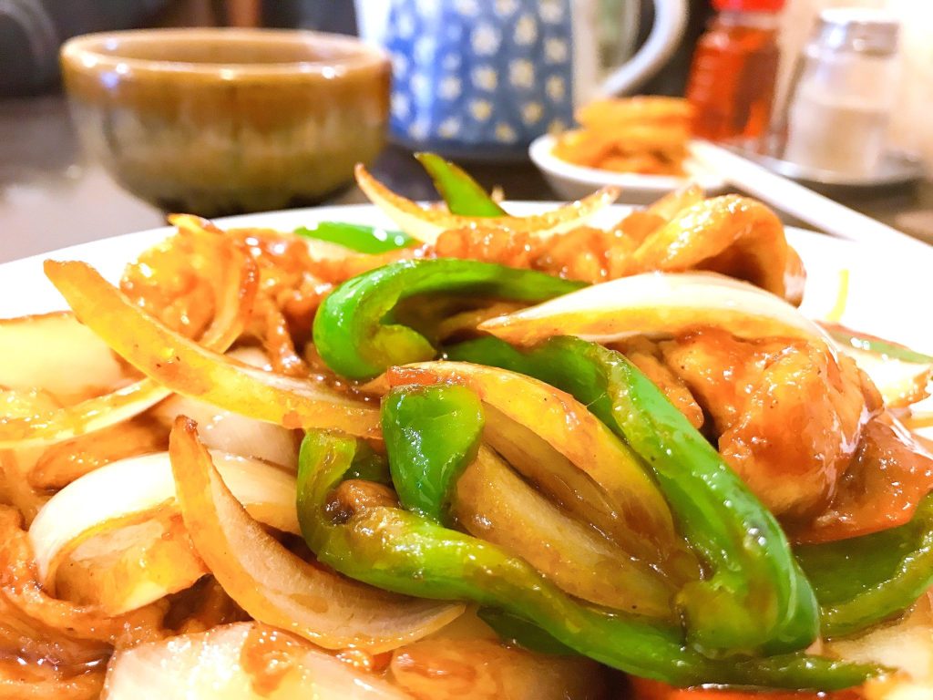 じゃがいも、なす、ピーマンを油で香ばしく炒めた中国東北地方の家庭料理。ランチ出現時はラッキイイイイイ!!!くらいのノリで。