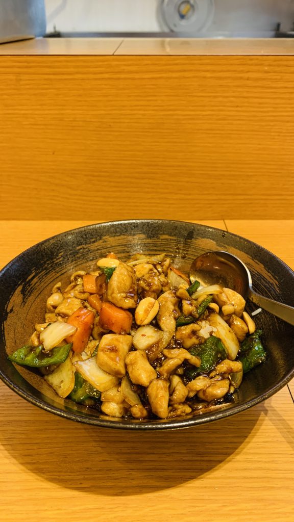 ピーナッツと鶏肉の炒め物。甘辛のタレが絶妙なのだ。
