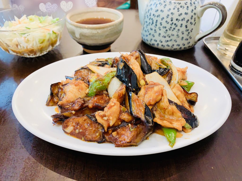 ナスチリ?って言えばいいんかな?エビチリのナス版の拌面。