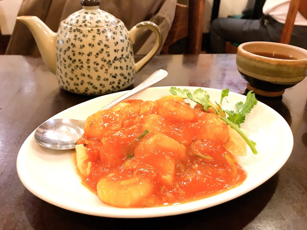 エビをチリソースで炒めた料理。ぷりぷりのエビさんなのだ。