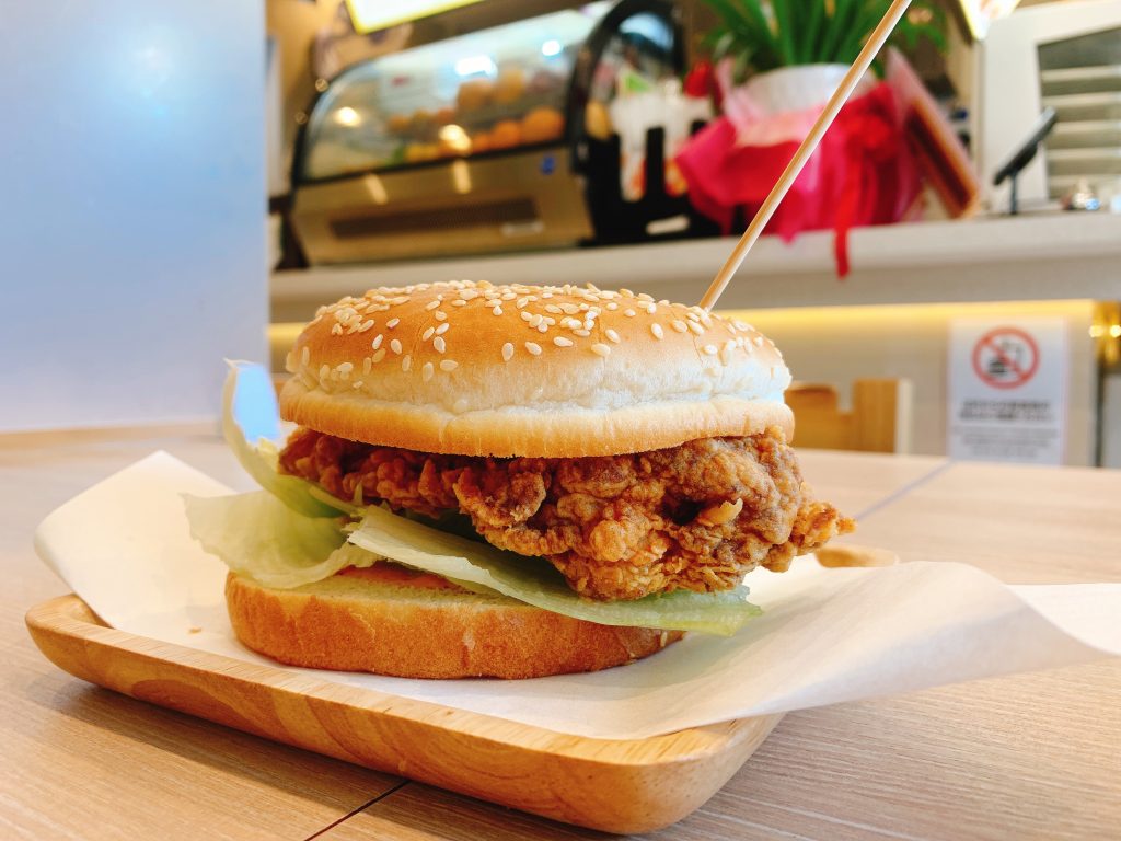 ほのかに麻辣してる麻辣バーガーさんです。チキンさん肉厚。