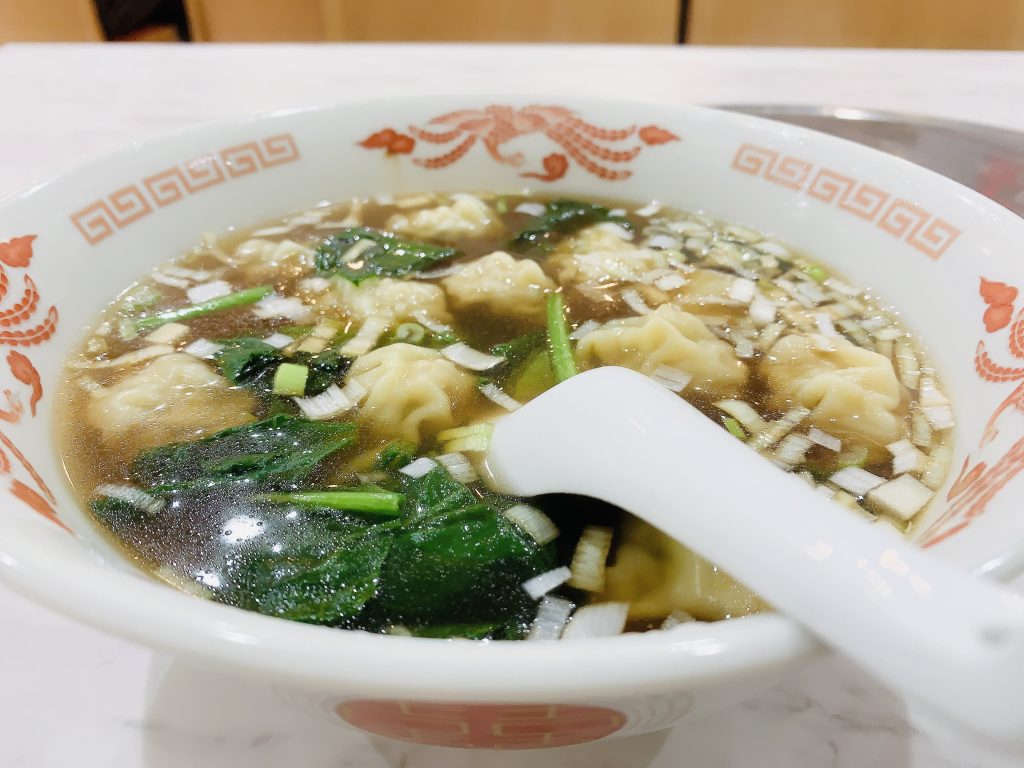 福建風味のワンタンスープですが、福建風味の酸味がアレな人は日本人向けの味付けにしてくれます。どっちでもええん、美味しいから。